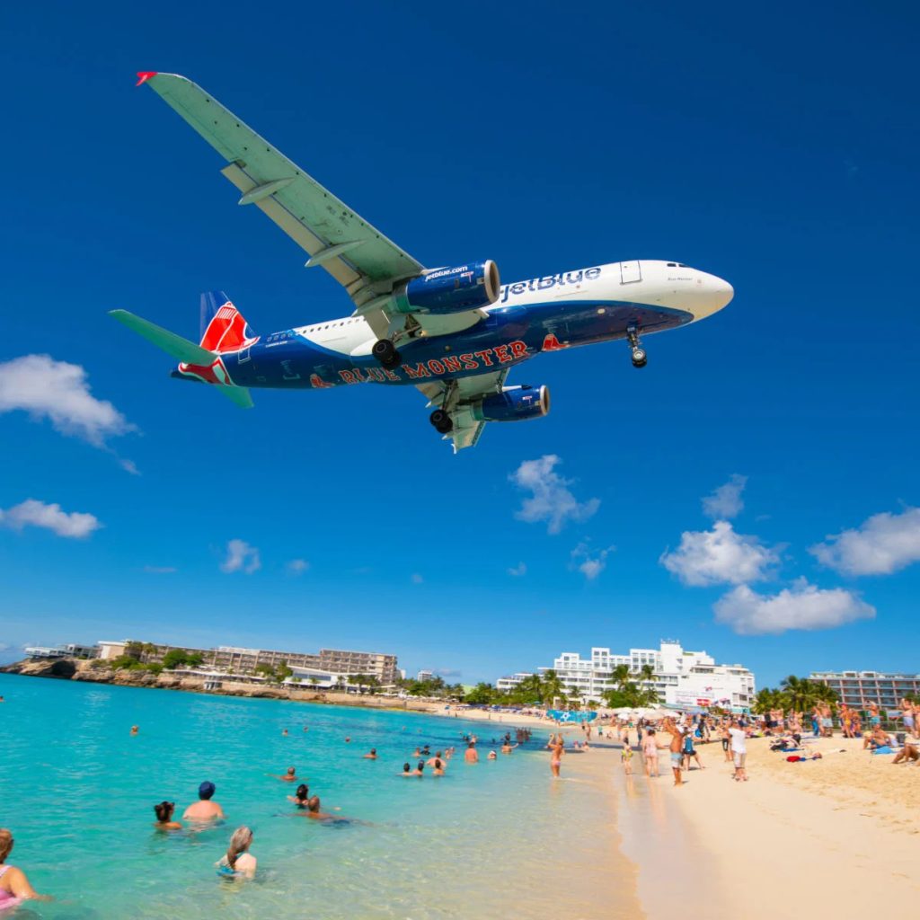 Playa Maho: situada al lado de la pista de aterrizaje del aeropuerto y desde la que puedes casi tocar con tus manos los aviones que llegan a la isla.
